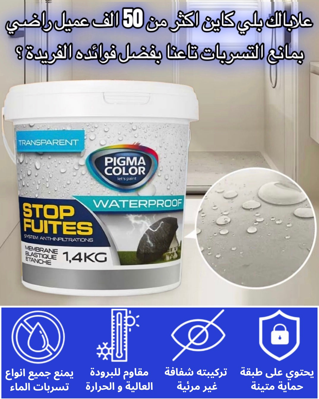 هو طلاء شفاف مقاوم للماء والرطوبة، يتستعمل فوق الأسطح، الجدران، الحمامات، أو أي مكان فيه تسربات. يشكّل طبقة عازلة تمنع تسرب الماء نهائيًا